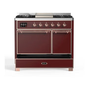 ILVE Majestic II 40 Inch UMD10FDQNS3BUPLP Freestanding Dual Fuel Range with 6 Sealed Burners, Griddle, Solid Door, in Burgundy with Copper Trim