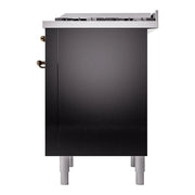Introducing the new Nostalgie II 36 dual fuel range, the ilve nostalgie range 36, a classic addition with a touch of innovation to any kitchen. This range features sealed burners equipped with total black brass burners that have a non-stick nanotechnological coating, heavy cast iron grates, 3.5 cu. ft. total oven capacity, and a soft closing door system.