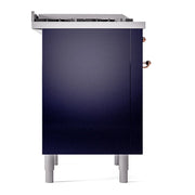 Introducing the new ilve nostalgie range 36 dual fuel range, a classic addition with a touch of innovation to any kitchen. This range features sealed burners equipped with total black brass burners that have a non-stick nanotechnological coating, heavy cast iron grates, 3.5 cu. ft. total oven capacity, and a soft closing door system, blending timeless style with modern performance.
