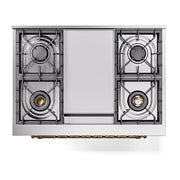 Introducing the new Nostalgie II 36 dual fuel range, a classic addition with a touch of innovation to any kitchen. The ilve nostalgie range 36 features sealed burners equipped with total black brass burners that have a non-stick nanotechnological coating, heavy cast iron grates, 3.5 cu. ft. total oven capacity, and a soft closing door system for effortless daily use.