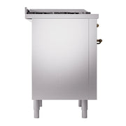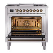 Introducing the new ILVE Nostalgie range 36 dual fuel range, a classic addition with a touch of innovation to any kitchen. This range features sealed burners equipped with total black brass burners that have a non-stick nanotechnological coating, heavy cast iron grates, 3.5 cu. ft. total oven capacity, and a soft closing door system.
