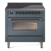 Introducing the new Nostalgie II 36 induction range, a classic addition with a touch of innovation to any kitchen. The ilve nostalgie range 36 features 6 precise and efficient element zones, 3.5 cu. ft. dual oven capacity, and a soft closing door system, blending timeless style with modern functionality.
