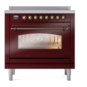 Introducing the new ilve nostalgie range 36, a classic addition with a touch of innovation to any kitchen. This range features 6 precise and efficient element zones, 3.5 cu. ft. dual oven capacity, and a soft-closing door system.