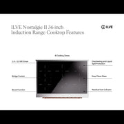 Introducing the new ilve nostalgie range 36, a classic addition with a touch of innovation to any kitchen. This range features 6 precise and efficient element zones, 3.5 cu. ft. dual oven capacity, and soft closing door system.