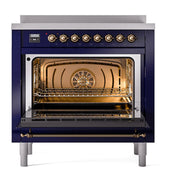 Introducing the new ILVE Nostalgie range 36 induction range, a classic addition with a touch of innovation to any kitchen. This range features 6 precise and efficient element zones, 3.5 cu. ft. dual oven capacity, and a soft closing door system.
