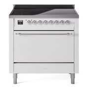 Introducing the new ILVE Nostalgie range 36 induction range, a classic addition with a touch of innovation to any kitchen. This range features 6 precise and efficient element zones, 3.5 cu. ft. dual oven capacity, and a soft closing door system, blending timeless style with modern functionality.