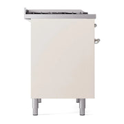 Introducing the new Nostalgie II ilve 40 inch range nostalgie, a classic addition with a touch of innovation to any kitchen. This range features sealed burners equipped with total black brass burners that have a non-stick nanotechnological coating, heavy cast iron grates, 2.3 + 2 cu. ft. dual oven capacity, and a soft closing door system for effortless daily use.