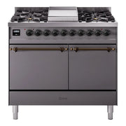 Built with AISI 304 steel and 12/10 thickness, choose your ideal combination between gas burner cooktop, induction, mixed configurations, and various setups for the ILVE 40 inch range Nostalgie. This customization allows for tailored cooking solutions that match your kitchen's needs and preferences.