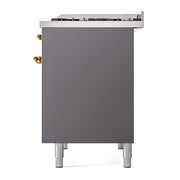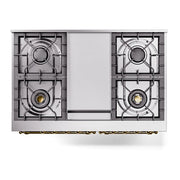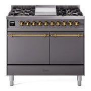 Introducing the new Nostalgie II 40 dual fuel range from ILVE, the ilve 40 inch range nostalgie brings a classic addition with a touch of innovation to any kitchen. This range features sealed burners equipped with total black brass burners that have a non-stick nanotechnological coating, heavy cast iron grates, 2.3 + 2 cu. ft. dual oven capacity, and a soft closing door system, ensuring versatile and efficient cooking experiences.