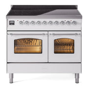 Introducing the new ILVE 40 inch range Nostalgie, a classic addition with a touch of innovation to any kitchen. This range features 6 precise and efficient element zones, heavy cast iron grates, 2.3 + 2 cu. ft. dual oven capacity, and a soft closing door system, blending timeless style with modern performance.