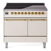Introducing the new ILVE 40 inch range Nostalgie II induction range, a classic addition with a touch of innovation to any kitchen. This range features 6 precise and efficient element zones, heavy cast iron grates, 2.3 + 2 cu. ft. dual oven capacity, and a soft closing door system.