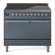 Introducing the new ILVE 40 inch range Nostalgie, a classic addition with a touch of innovation to any kitchen. This range features 6 precise and efficient element zones, heavy cast iron grates, 2.3 + 2 cu. ft. dual oven capacity, and a soft closing door system, blending timeless style with modern functionality.