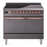 Introducing the new ILVE 40 inch range Nostalgie II induction range, a classic addition with a touch of innovation to any kitchen. This range features 6 precise and efficient element zones, heavy cast iron grates, 2.3 + 2 cu. ft. dual oven capacity, and a soft closing door system.