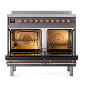 Bridge control allows simultaneous management of two adjacent zones with a single command, treating them as one larger zone for greater flexibility. This feature is ideal for using larger cookware, making cooking more efficient and convenient on the ILVE 40 inch range Nostalgie.