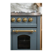 Nostalgie range cookers integrate highly professional technologies and excellent materials with a classic style that is always inspiring. Undisputed protagonists of the kitchen, they offer a complete choice of sizes (from 30 to 60 inches) and various configurations: you can choose the flush-top induction up to 6 cooking zones with bridge function for 48 inches version, single or double oven, standard colors or RAL colors on request, various finishes and accessories. Only available as an option for the Nostalgie collection, Noblesse frames are more than just a detail: they are a fine design feature that frames the front panels, matching the metallic finishes of the handles and knobs. The blind door inspired by the past is another option that elegantly enriches the style of Nostalgie.