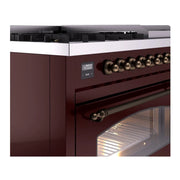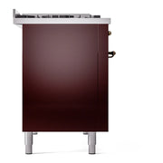 Introducing the new ILVE Nostalgie range 48 dual fuel range, a classic addition with a touch of innovation to any kitchen. This range features sealed burners equipped with total black brass burners that have a non-stick nanotechnological coating, heavy cast iron grates, 3.5 + 1.52 cu. ft. total double oven capacity and soft closing door system. Discover the perfect blend of retro elegance and modern performance in this Italian-crafted appliance.