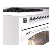 The ILVE Nostalgie range 48 embodies the taste of tradition updated with modern innovations, prioritizing top-level performance alongside simplicity, safety, and user-friendliness. It delivers exceptional satisfaction in every meal preparation.