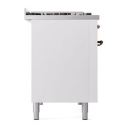 Introducing the new ILVE Nostalgie Range 48 dual fuel range, a classic addition with a touch of innovation to any kitchen. This range features sealed burners equipped with total black brass burners that have a non-stick nanotechnological coating, heavy cast iron grates, 3.5 + 1.52 cu. ft. total double oven capacity, and a soft closing door system for effortless operation.