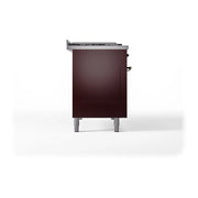 Introducing the new Nostalgie II 48 dual fuel range, a classic addition with a touch of innovation to any kitchen. The ILVE Nostalgie Range 48 features sealed burners equipped with total black brass burners that have a non-stick nanotechnological coating, heavy cast iron grates, 3.5 + 1.52 cu. ft. total double oven capacity, and a soft closing door system.