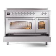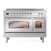 Introducing the new ILVE Nostalgie Range 48 induction range, a classic addition with a touch of innovation to any kitchen. This range features 6 precise and efficient element zones with booster function, overheating and liquid spill protection, 3.5 + 1.52 cu. ft. dual oven capacity, and soft closing door system.