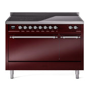 Introducing the new ILVE Nostalgie Range 48 induction range, a classic addition with a touch of innovation to any kitchen. This range features 6 precise and efficient element zones with booster function, overheating and liquid spill protection, 3.5 + 1.52 cu. ft. dual oven capacity, and a soft closing door system.