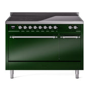 Introducing the new ilve nostalgie range 48 induction range, a classic addition with a touch of innovation to any kitchen. This range features 6 precise and efficient element zones with booster function, overheating and liquid spill protection, 3.5 + 1.52 cu. ft. dual oven capacity, and soft closing door system.