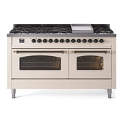 Introducing the new ILVE Nostalgie 60 dual fuel range, a classic addition with a touch of innovation to any kitchen. This range features sealed burners equipped with total black brass burners that have a non-stick nanotechnological coating, heavy cast iron grates, 3.5 + 2.3 cu. ft. dual oven capacity, and a soft closing door system, blending timeless style with modern functionality in the ILVE Nostalgie 60.