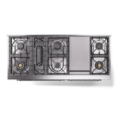 Introducing the new ilve nostalgie 60 dual fuel range, a classic addition with a touch of innovation to any kitchen. This range features sealed burners equipped with total black brass burners that have a non-stick nanotechnological coating, heavy cast iron grates, 3.5 + 2.3 cu. ft. dual oven capacity, and a soft closing door system for effortless operation and enhanced durability.
