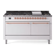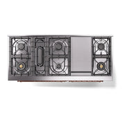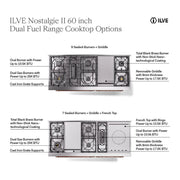 Introducing the new ILVE Nostalgie 60 dual fuel range, a classic addition with a touch of innovation to any kitchen. This range features sealed burners equipped with total black brass burners that have a non-stick nanotechnological coating, heavy cast iron grates, 3.5 + 2.3 cu. ft. dual oven capacity, and a soft closing door system, elevating your cooking experience with timeless style and modern efficiency.