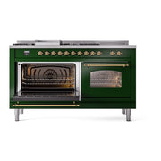 Introducing the new ILVE Nostalgie 60 dual fuel range, a classic addition with a touch of innovation to any kitchen. This range features sealed burners equipped with total black brass burners that have a non-stick nanotechnological coating, heavy cast iron grates, 3.5 + 2.3 cu. ft. dual oven capacity, and a soft closing door system.