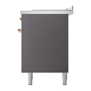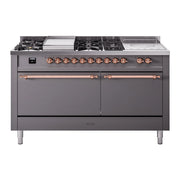 Introducing the new ilve nostalgie 60 dual fuel range, a classic addition with a touch of innovation to any kitchen. This range features sealed burners equipped with total black brass burners that have a non-stick nanotechnological coating, heavy cast iron grates, 3.5 + 2.3 cu. ft. dual oven capacity, and a soft closing door system.