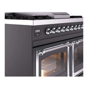 Introducing the new ILVE 40 inch range Nostalgie, a classic addition with a touch of innovation to any kitchen. This dual fuel range features sealed burners equipped with total black brass burners that have a non-stick nanotechnological coating, heavy cast iron grates, 2.3 + 2 cu. ft. dual oven capacity, and a soft closing door system.