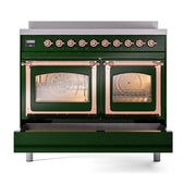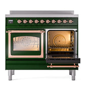 Introducing the new Nostalgie II 40 induction range, a classic addition with a touch of innovation to any kitchen. The ilve 40 inch range nostalgie features 6 precise and efficient element zones, heavy cast iron grates, 2.3 + 2 cu. ft. dual oven capacity, and a soft closing door system. ILVE’s Nostalgie Series combines elegant retro aesthetic inspiration with cutting-edge technologies, integrating highly professional features and excellent materials in a classic style.