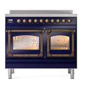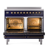 Introducing the new ILVE 40 inch range Nostalgie II, a classic addition with a touch of innovation to any kitchen. This range features 6 precise and efficient element zones, heavy cast iron grates, 2.3 + 2 cu. ft. dual oven capacity, and a soft closing door system.