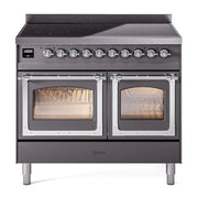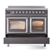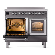 Introducing the new ILVE 40 inch range Nostalgie, a classic addition with a touch of innovation to any kitchen. This range features 6 precise and efficient element zones, heavy cast iron grates, 2.3 + 2 cu. ft. dual oven capacity and soft closing door system. The ILVE 40 inch range Nostalgie blends timeless style with modern performance for effortless cooking.