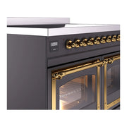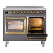 Introducing the new Nostalgie II ILVE 40 inch range Nostalgie, a classic addition with a touch of innovation to any kitchen. This range features 6 precise and efficient element zones, heavy cast iron grates, 2.3 + 2 cu. ft. dual oven capacity, and soft closing door system.