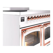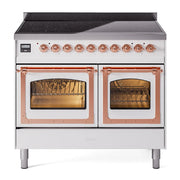 Introducing the new ILVE 40 inch range Nostalgie II induction range, a classic addition with a touch of innovation to any kitchen. This range features 6 precise and efficient element zones, heavy cast iron grates, 2.3 + 2 cu. ft. dual oven capacity, and soft closing door system.
