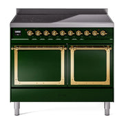 Introducing the new Nostalgie II 40 induction range, a classic addition with a touch of innovation to any kitchen. The ILVE 40 inch range Nostalgie features 6 precise and efficient element zones, heavy cast iron grates, 2.3 + 2 cu. ft. dual oven capacity, and a soft closing door system, blending timeless style with modern performance.