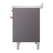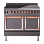 Introducing the new Nostalgie II 40 induction range, a classic addition with a touch of innovation to any kitchen. The ilve 40 inch range nostalgie features 6 precise and efficient element zones, heavy cast iron grates, 2.3 + 2 cu. ft. dual oven capacity, and a soft closing door system, blending timeless style with modern functionality.