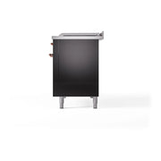 The brass burners feature a nanotechnological coating for easy cleaning and an elegant Total Black finish. This design maintains the noble characteristics of brass while simplifying maintenance and adding a sophisticated look to your ilve nostalgie range 48.