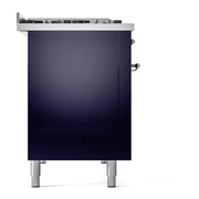 Introducing the new ILVE Nostalgie Range 48 dual fuel range, a classic addition with a touch of innovation to any kitchen. This range features sealed burners equipped with total black brass burners that have a non-stick nanotechnological coating, heavy cast iron grates, 3.5 + 1.52 cu. ft. total double oven capacity, and a soft closing door system.