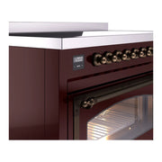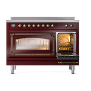 Introducing the new ILVE Nostalgie Range 48 induction range, a classic addition with a touch of innovation to any kitchen. This range features 6 precise and efficient element zones with booster function, overheating and liquid spill protection, 3.5 + 1.52 cu. ft. dual oven capacity and soft closing door system.