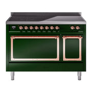 Introducing the new ILVE Nostalgie Range 48 induction range, a classic addition with a touch of innovation to any kitchen. This range features 6 precise and efficient element zones with booster function, overheating and liquid spill protection, 3.5 + 1.52 cu. ft. dual oven capacity, and soft closing door system.
