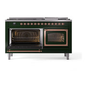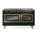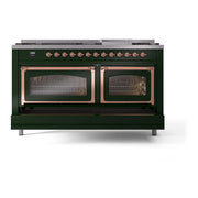 Introducing the new ilve nostalgie 60 dual fuel range, a classic addition with a touch of innovation to any kitchen. This range features sealed burners equipped with total black brass burners that have a non-stick nanotechnological coating, heavy cast iron grates, 3.5 + 2.3 cu. ft. dual oven capacity and soft closing door system.