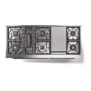Introducing the new ILVE Nostalgie 60 dual fuel range, a classic addition with a touch of innovation to any kitchen. This range features sealed burners equipped with total black brass burners that have a non-stick nanotechnological coating, heavy cast iron grates, 3.5 + 2.3 cu. ft. dual oven capacity, and a soft closing door system, blending timeless style with modern functionality.