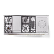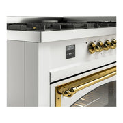 Introducing the new ilve nostalgie 60 dual fuel range, a classic addition with a touch of innovation to any kitchen. This range features sealed burners equipped with total black brass burners that have a non-stick nanotechnological coating, heavy cast iron grates, 3.5 + 2.3 cu. ft. dual oven capacity, and a soft closing door system.