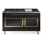 Introducing the new ILVE Nostalgie 60 dual fuel range, a classic addition with a touch of innovation to any kitchen. This range features sealed burners equipped with total black brass burners that have a non-stick nanotechnological coating, heavy cast iron grates, 3.5 + 2.3 cu. ft. dual oven capacity, and a soft closing door system.