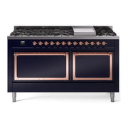 Introducing the new ILVE Nostalgie 60 dual fuel range, a classic addition with a touch of innovation to any kitchen. This range features sealed burners equipped with total black brass burners that have a non-stick nanotechnological coating, heavy cast iron grates, 3.5 + 2.3 cu. ft. dual oven capacity, and soft closing door system.