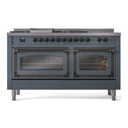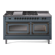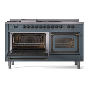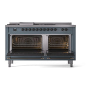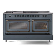 Introducing the new ILVE Nostalgie 60 dual fuel range, a classic addition with a touch of innovation to any kitchen. This range features sealed burners equipped with total black brass burners that have a non-stick nanotechnological coating, heavy cast iron grates, 3.5 + 2.3 cu. ft. dual oven capacity, and a soft closing door system.