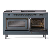 Nostalgie range cookers integrate highly professional technologies and excellent materials with a classic style that is always inspiring. Undisputed protagonists of the kitchen, they offer a complete choice of sizes (from 30 to 60 inches) and various configurations: you can choose the flush-top induction up to 6 cooking zones with bridge function for 48 inches version, single or double oven, standard colors or RAL colors on request, various finishes and accessories. Only available as an option for the Nostalgie collection, Noblesse frames are more than just a detail: they are a fine design feature that frames the front panels, matching the metallic finishes of the handles and knobs. The blind door inspired by the past is another option that elegantly enriches the style of Nostalgie.